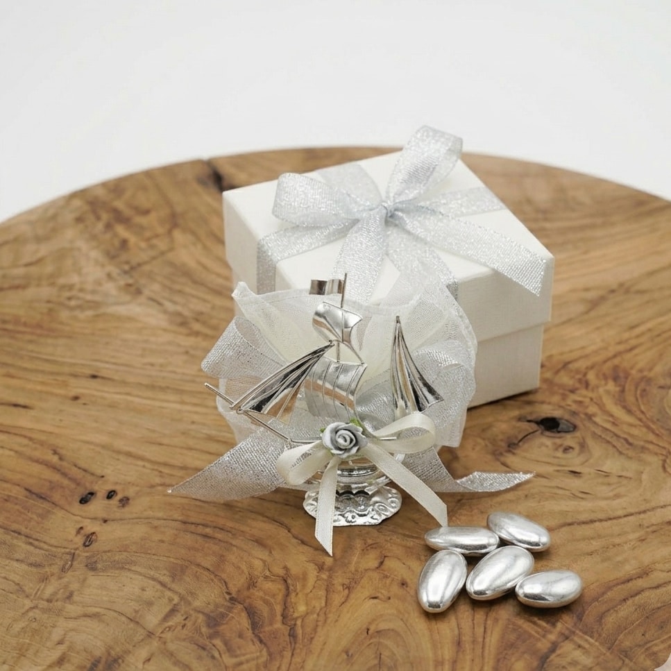 Bomboniera Nozze d’Argento con veliero artigianale