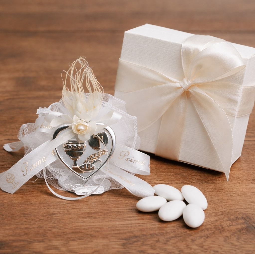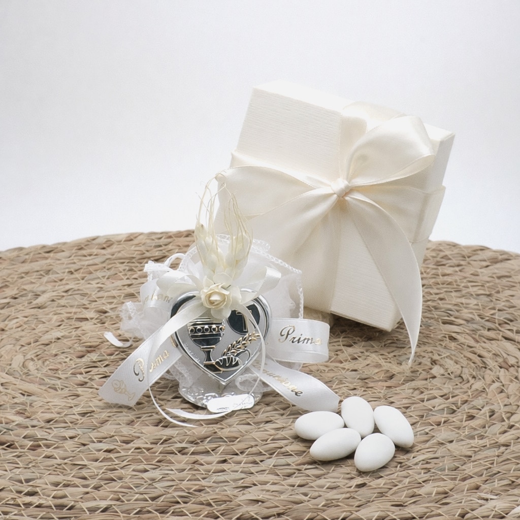 Bomboniera Prima Comunione con cuore e simboli sacri