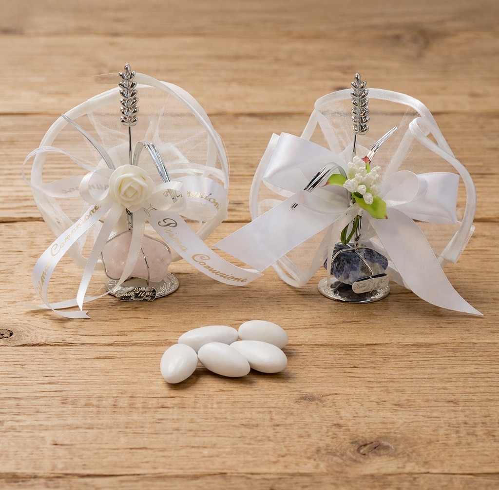 Bomboniera Prima Comunione spiga di grano su pietra minerale