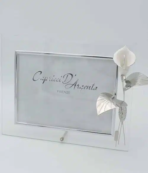 Cornice portafoto 20×15 in vetro con calla porcellana e argento