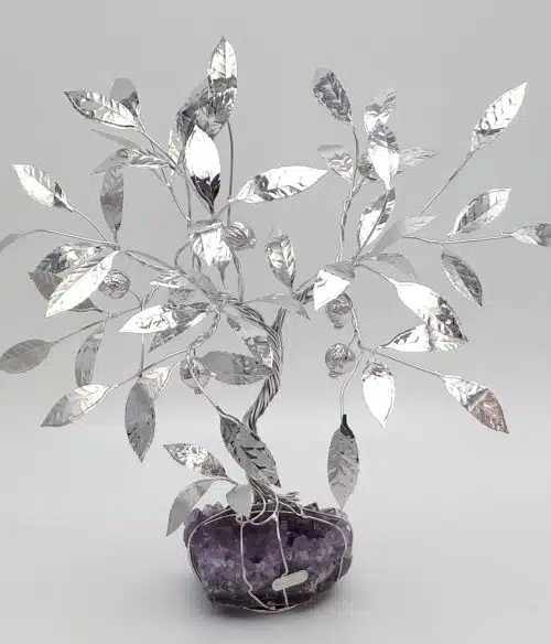 Olivo in argento su ametista, idea regalo fatto a mano