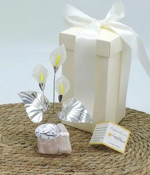 Regalo nozze d’oro con calle su quarzo rosa fatte a mano