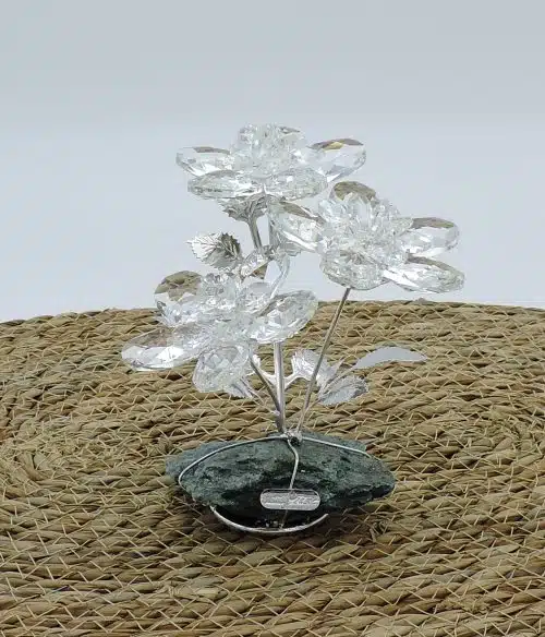 Fiori in cristallo e argento su pietra minerale fatto a mano