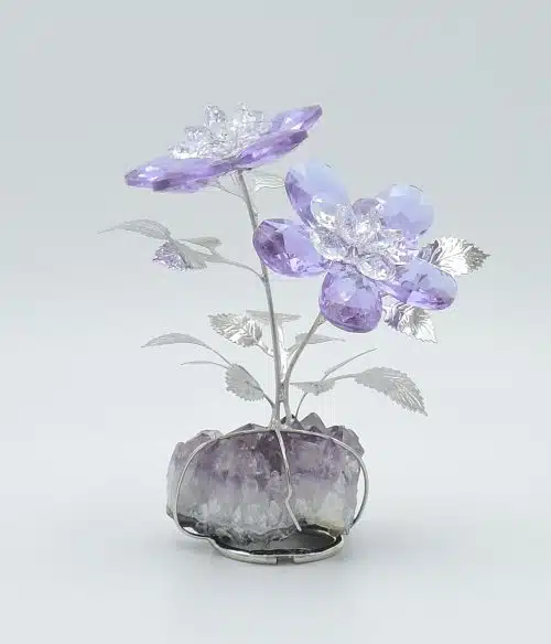 Fiori in cristallo e argento su Ametista, realizzato a mano