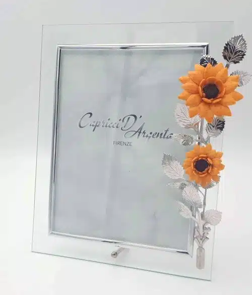 Girasole in argento e porcellana dipinta a mano, realizzato artigianalmente