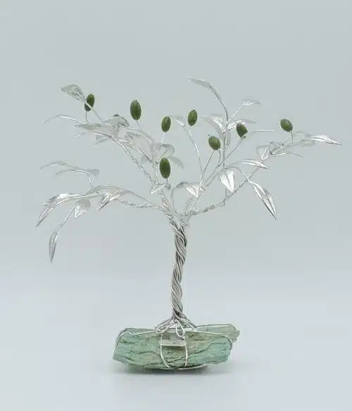 Olivo artigianale in argento su pietra minerale, idea regalo