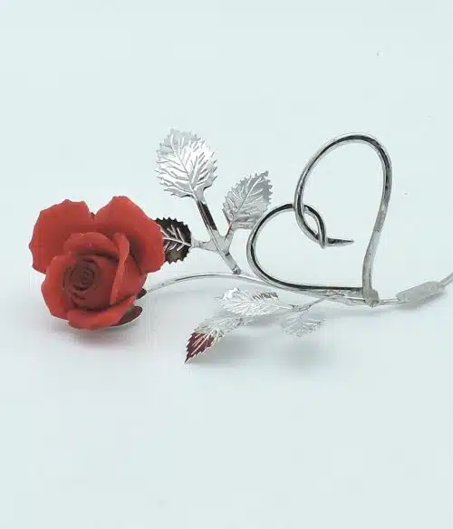 Rose con dedica personale, porcellana e argento su pietra minerale