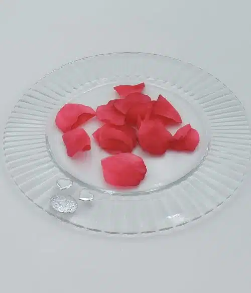 Regalo nozze d’argento con fiori in cristallo su quarzo rosa