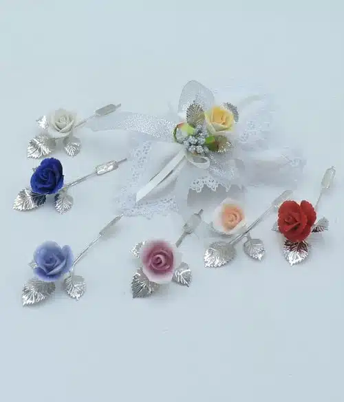 Bomboniera nozze d’argento con rose bianche