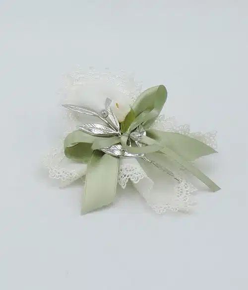 Bomboniera nozze di smeraldo con olivo in argento e confetti