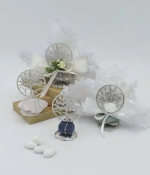 Bomboniera albero della vita fatto a mano con pietra minerale