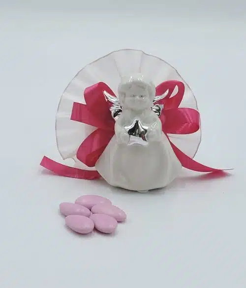 Bomboniera battesimo femmina con angelo in porcellana bianca