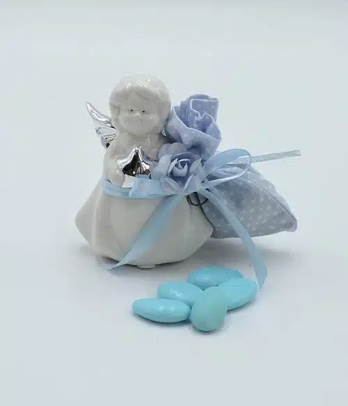 Bomboniera battesimo maschio con angelo in porcellana bianca
