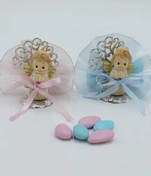 Bomboniera 1° compleanno con angelo e albero della vita