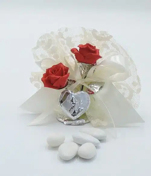 Bomboniera Santa Rita con rose in porcellana decorata a mano