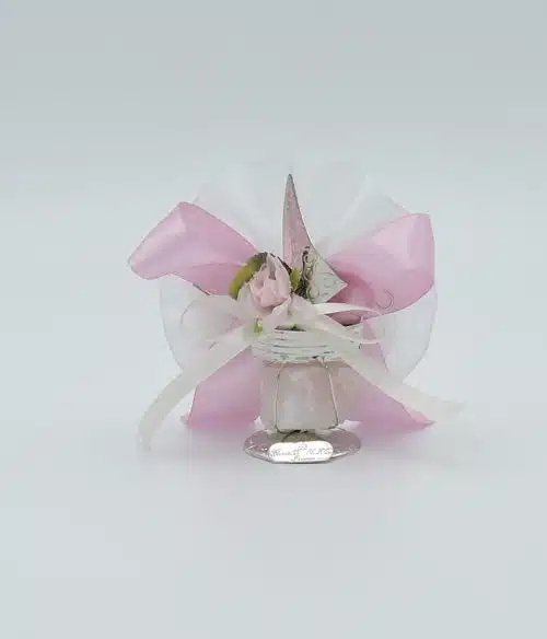 Bomboniera battesimo bambina con barca su quarzo rosa