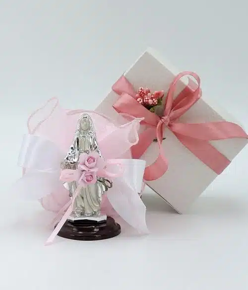 Bomboniera bambino con statuetta Madonna per battesimo