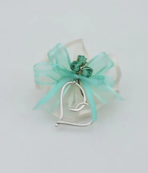 Bomboniera con rosa porcellana e argento per compleanno