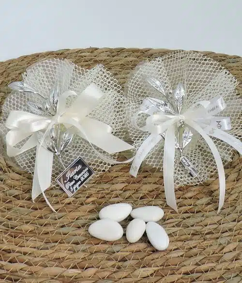 Bomboniera con calla realizzata a mano con pizzo bianco