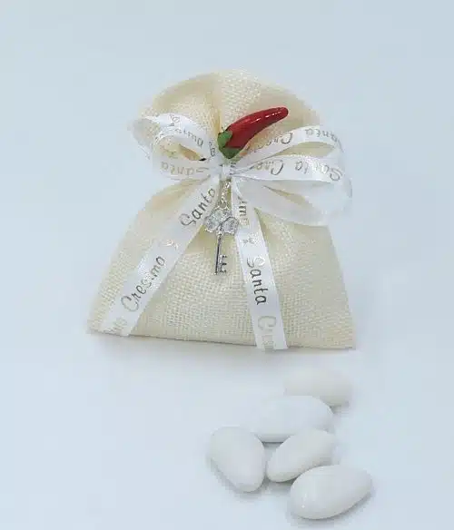 Bomboniera cresima con charm chiave portafortuna e confetti