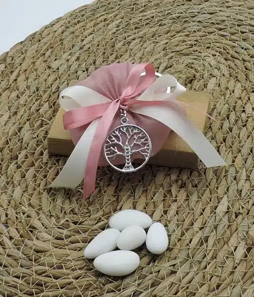 Bomboniera santa cresima con olivo fatto a mano in argento