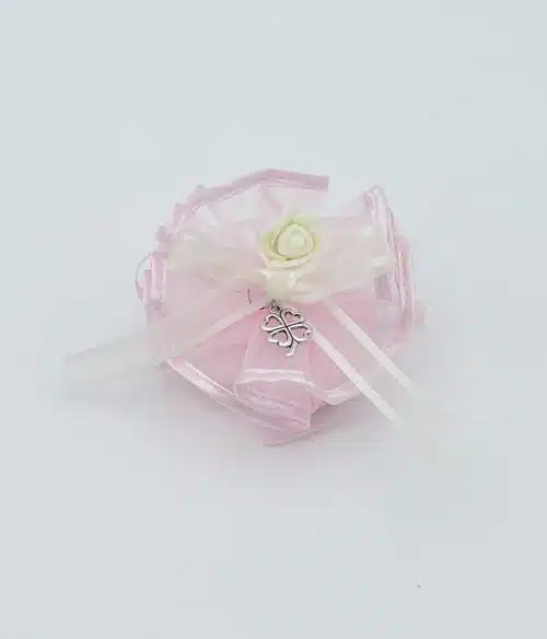 Bomboniera bimba con charm quadrifoglio e confezione rosa