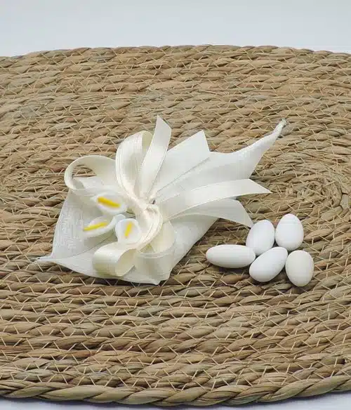 Bomboniera matrimonio sacchetto con confetti, color avorio