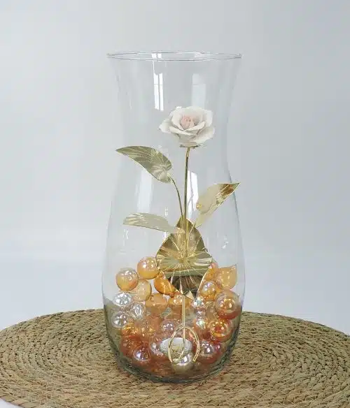 Vaso per 50° anniversario con rosa in porcellana e bagno oro