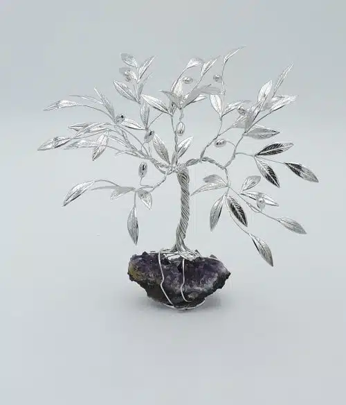 Spiga di grano in capodimonte e argento su quarzo rosa, realizzata a mano