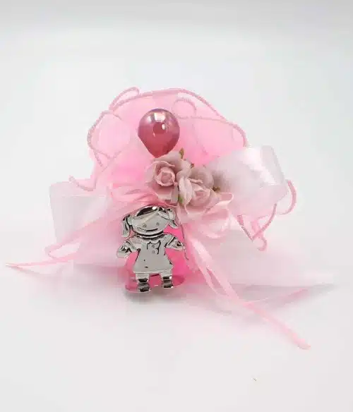 Bomboniera per battesimo bambina con ciuccio in cristallo e argento