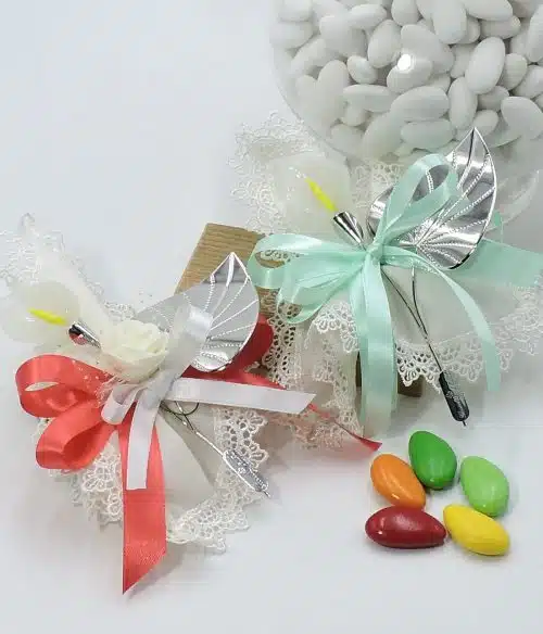 Bomboniera con 3 calle in vetro soffiato e argento su quarzo rosa