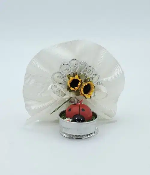 Bomboniere compleanno con albero della vita con candela con coccinella