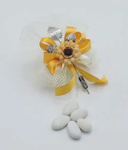 Bomboniera compleanno con girasole fatto a mano e confetti