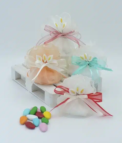 Bomboniera comunione con rosa porcellana su pietra minerale