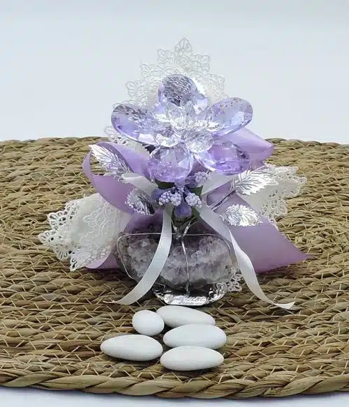 Bomboniera comunione con fiore in cristallo color glicine