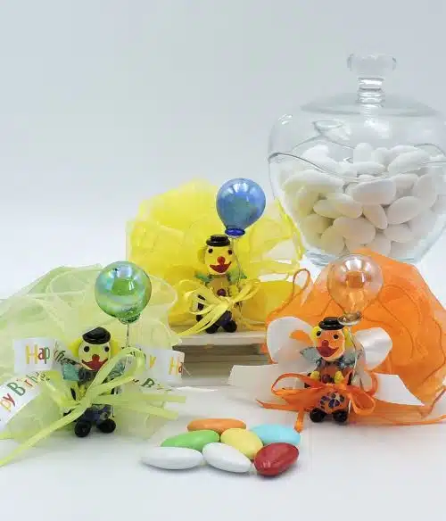 Bomboniera compleanno bambino con clown in vetro soffiato