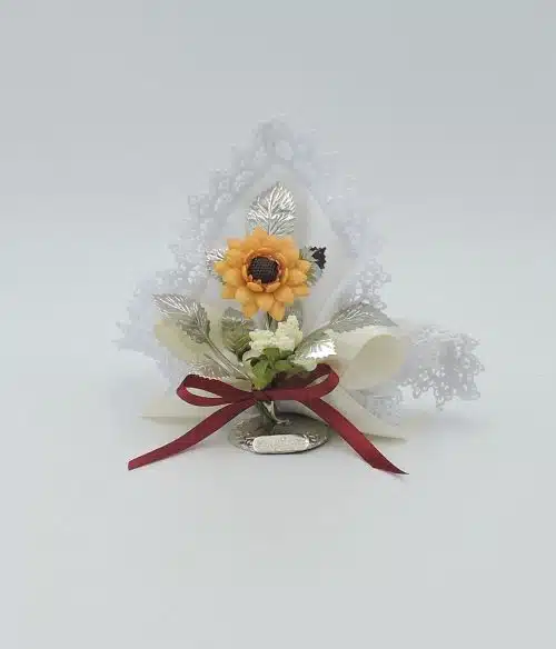 Bomboniera cresima con rosa in porcellana bianca e confetti