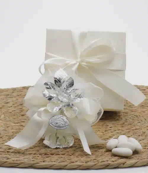 Bomboniera nozze d’argento, cestino con fiore in cristallo