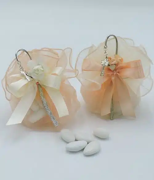 Bomboniera matrimonio sacchetto salmone con segnalibro