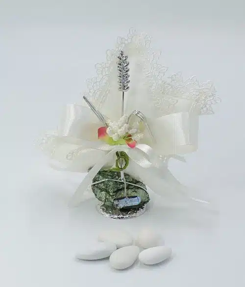 Bomboniera matrimonio con spiga di grano su pietra minerale