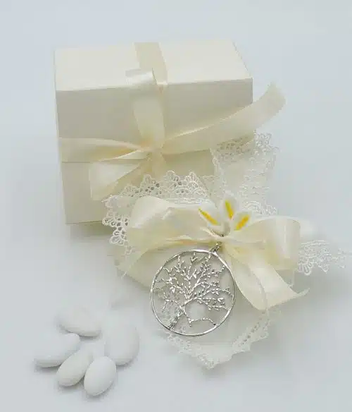 Bomboniera matrimonio con ciondolo albero della vita in argento