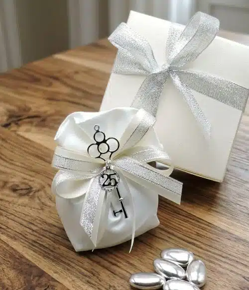 Bomboniera Nozze d’Argento con chiave dell’amore eterno