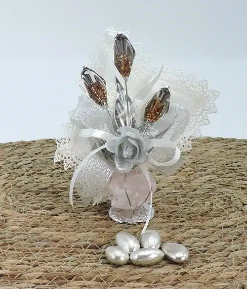 Bomboniera nozze d’argento con olivo su pietra minerale
