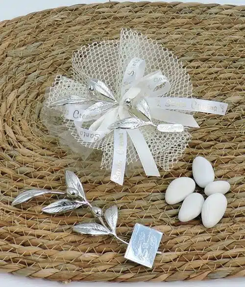 Bomboniera comunione con olivo in argento fatto a mano