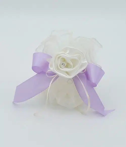 Bomboniera matrimonio con sacchetto in organza con rosa in raso