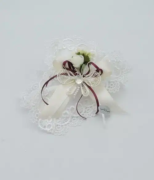 Bomboniera santa cresima con farfalla in filigrana con molletta con fazzoletto avorio