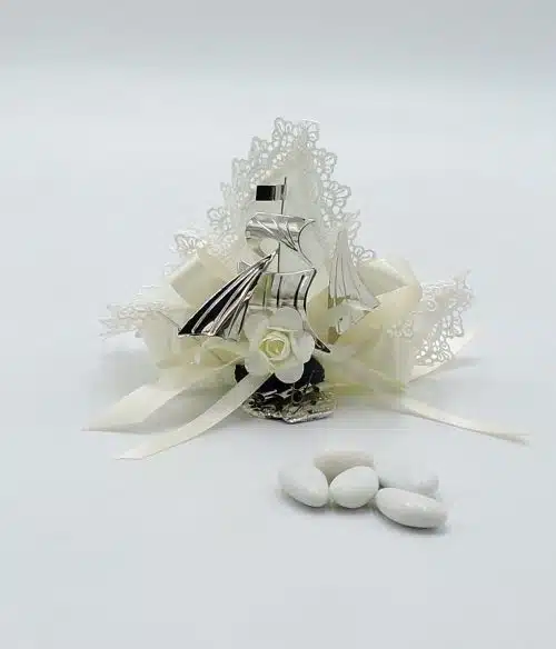 Bomboniera matrimonio con veliero in argento fatto a mano