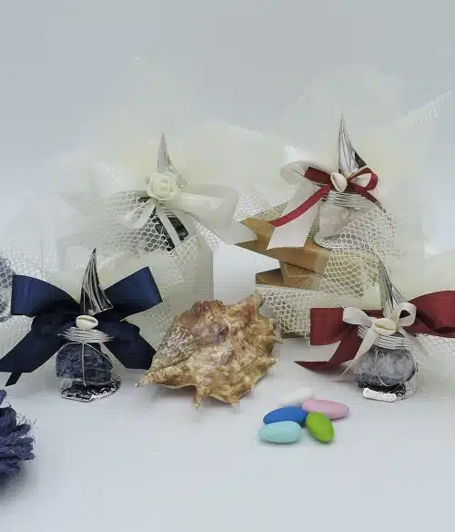 Bomboniera 25 anni di matrimonio tema mare con barca a vela