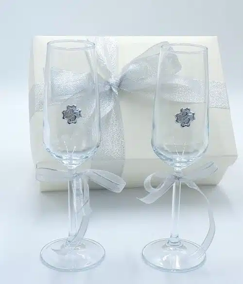 Regalo 25° anniversario di matrimonio con calici cristallo