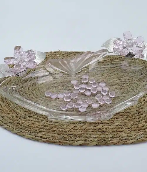 Centrotavola con fiore in cristallo e argento forma quadrata
